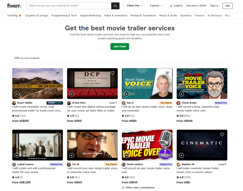 - Afordable pricing: Averages of $450 for a 2-minute trailer.